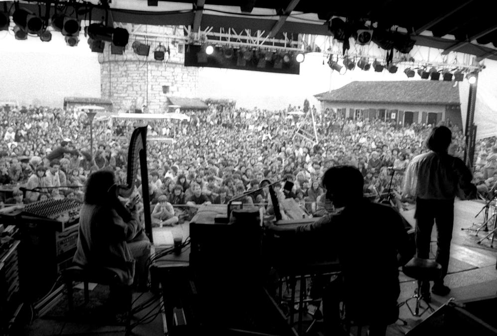 Danach war Andreas nicht mehr zu halten. Er experimentierte mit dem Instrument, besorgte sich sehr bald schon eine grössere Pedalharfe und suchte technische Wege der Verstärkung, um im Kontext mit Pop und Rock akustisch bestehen zu können.