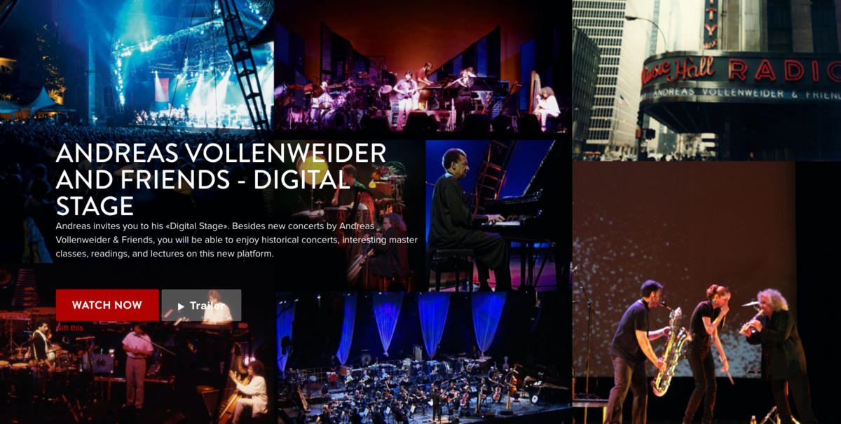 On this portal new concert activities of Andreas Vollenweider & Friends in different formations as well as recordings of legendary historical concerts will be shown. This is also the place where you will find series of masterclasses, readings and lectures which Andreas will publish regularly.